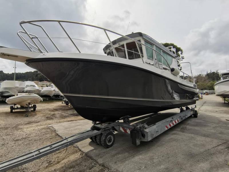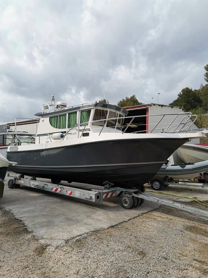 Bandol Meca Nautique a réalisé le transport du bateau, le nettoyage de la carène, l'entretien et l'hivernage des moteurs Mercury, la mise sous cocon du bateau et le stationnement pendant toute la période hivernale. Avant l'été, nous réaliserons la préparation du bateau avec le nettoyage et la mise à l'eau pour la livraison chez notre client.