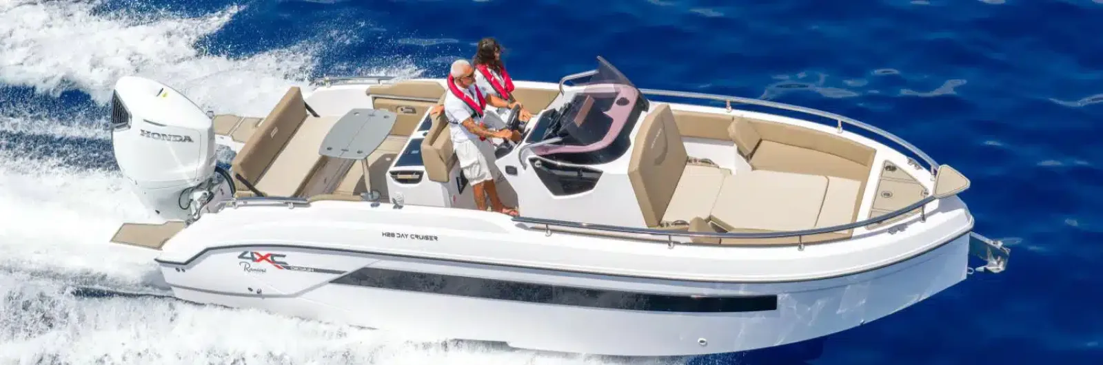 Le 4XC H28 Day Cruiser est un day‑cruiser premium de 8,20 m développé par Honda Marine en partenariat avec Ranieri International. Il combine design italien, technologies Honda de dernière génération et un niveau de confort haut de gamme pour des sorties à la journée ou des mini‑croisières. A PARTIR  DE 121199 TTC